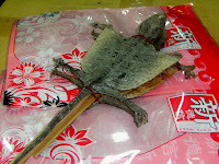 蛤蚧[ Gecko gecko L ]本品为守宫科动物蛤蚧去除内脏的尸体。性味:咸,平。入肺,肾经。功效:补肺肾,定喘嗽。用于肾虚气喘,肺虚咳喘等症。本平长于补肺益肾,尤能摄纳肾气,故对虚劳咳嗽,肾虚气喘,肺虚咳嗽等症,可与人参, 伏苓,贝母,甘草等药材配合应用。[ 常用一对 ] 。古代文献:治久咳嗽,肺劳。肺痿咯血,咳嗽上气。蛤蚧补肺气,定喘止渴,功同人参,益阴血,住精扶赢,功同羊肉。Ge jie [ 蛤蚧]Ge jie is sweet in flavor, slightly warm in nature, and attributive to the lung and kidney meridians. It medical actions are ton invigorates the kidney and nourishes the lung, strengthen yang and body essence, and relive cough and dyspnea.For invigorate the kidney and strengthen the back, it is usually combined with du zhong [杜仲], ba ji [巴戟], niu xi [牛膝], chuan mu gua.For nourish and strengthen the lung, it is usually combined with sha shen [沙参], Tang cao shen [糖抄参], ren shen [人参], he tao rou [核桃肉].For relive cough due to deficiency of the lung and kidney, it is usually combined with shad sheen [沙参], ah Jiao [阿胶], chuan bee [川贝].